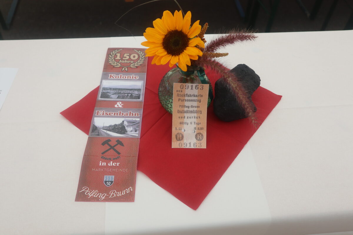 Am zweiten Tag des „150 Jahre Kolonie und Eisenbahn“ Jubiläums lud die Marktgemeinde Pölfing-Brunn zum stimmungsvollen Dämmerschoppen im Festzelt am Bahnhofsgelände ein.